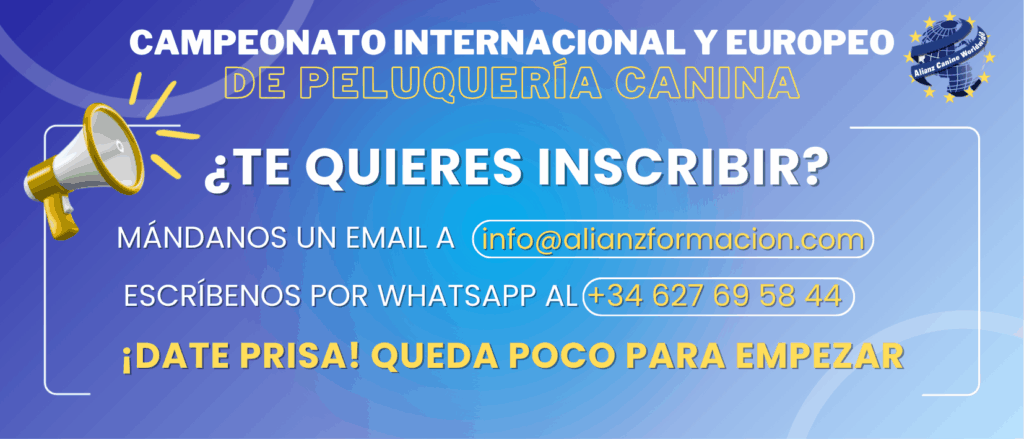 - Los perros participantes deben de tener un mínimo de 8 semanas sin realizar ningún proceso de peluquería excepto bañar, secar, cepillar y mantener las zonas higiénicas.