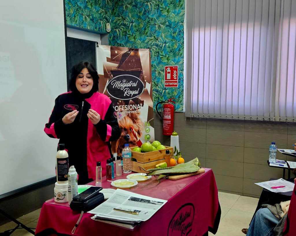 Este fin de semana, los días 24 y 25 de enero, se ha celebrado en las instalaciones de Magistral Royal el seminario “Dermocosmética Canina Aplicada a la Peluquería Profesional”, impartido por Naiara García, un encuentro formativo que ha resultado ser todo un éxito.