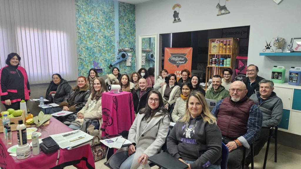 La formación ha sido impartida por un equipo de grandes profesionales del sector: Naiara García, peluquera canina profesional con una amplia trayectoria en el mundo del grooming y conocimiento del cuidado integral de la mascota; Pedro Serrano, veterinario colegiado y formador de la Fundación Alianz Canine Worldwide; y Rosendo Sarabia, responsable del desarrollo y formulación de los productos de cosmética canina de Magistral Royal.